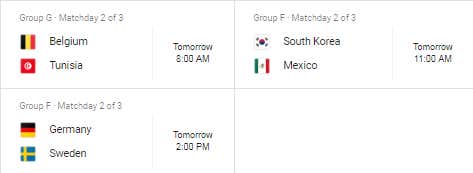 Couple early morning appetizers followed by the main dish as Germany finds itself in the odd position of playing for its life in the group stage.