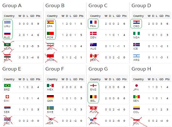 So let’s take a quick peek back at the Group A and B games from Monday and then roll through what we’re looking at today from Groups C and D at Puty’s World Cup…