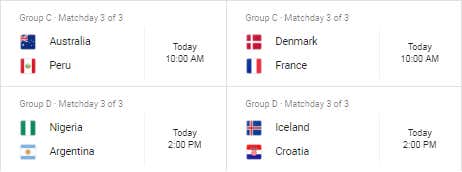 Schedule for today as we are about to get balls deep in Groups C and D: